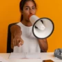 young-schoolgirl-sitting-desk-with-school-tools-speaks-loudspeaker